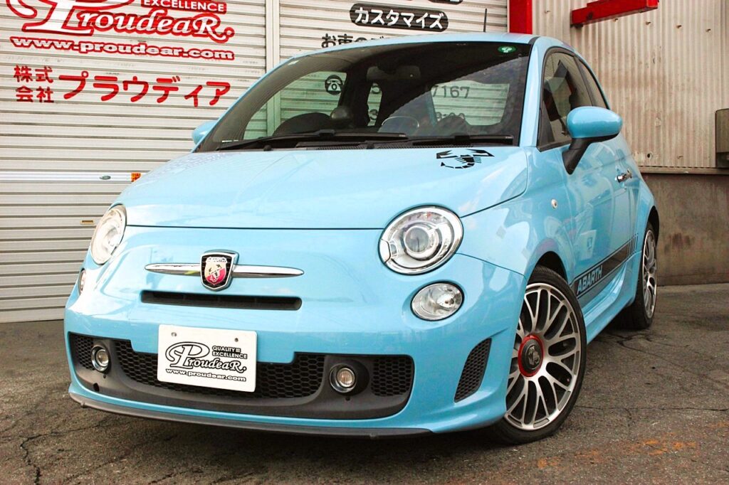 この個体はキセノンヘッドライトを装備しており、夜のドライブも安心。 コンディションの良い水色のアバルトは、中古車市場でも「出たらすぐ売れる」人気色です。