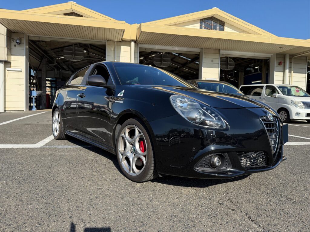 街並みに映える美しいブラックのアルファロメオ・ジュリエッタ。 本日は、車検整備でご入庫いただいた際の様子をご紹介します。