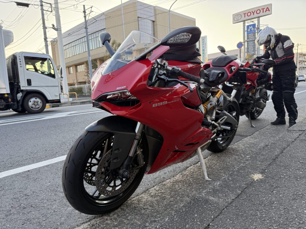 普段はアルファロメオ・ジュリエッタでご来店いただく、大のイタリア車フリークのお客様。ですが、今回は響く快音と共に、なんとご夫婦そろってドゥカティ(DUCATI)に乗って登場です!