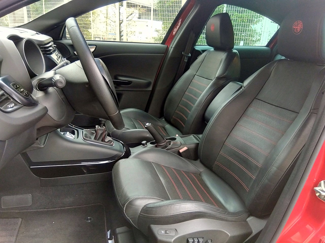 ・レッドステッチ入りブラックレザーシート